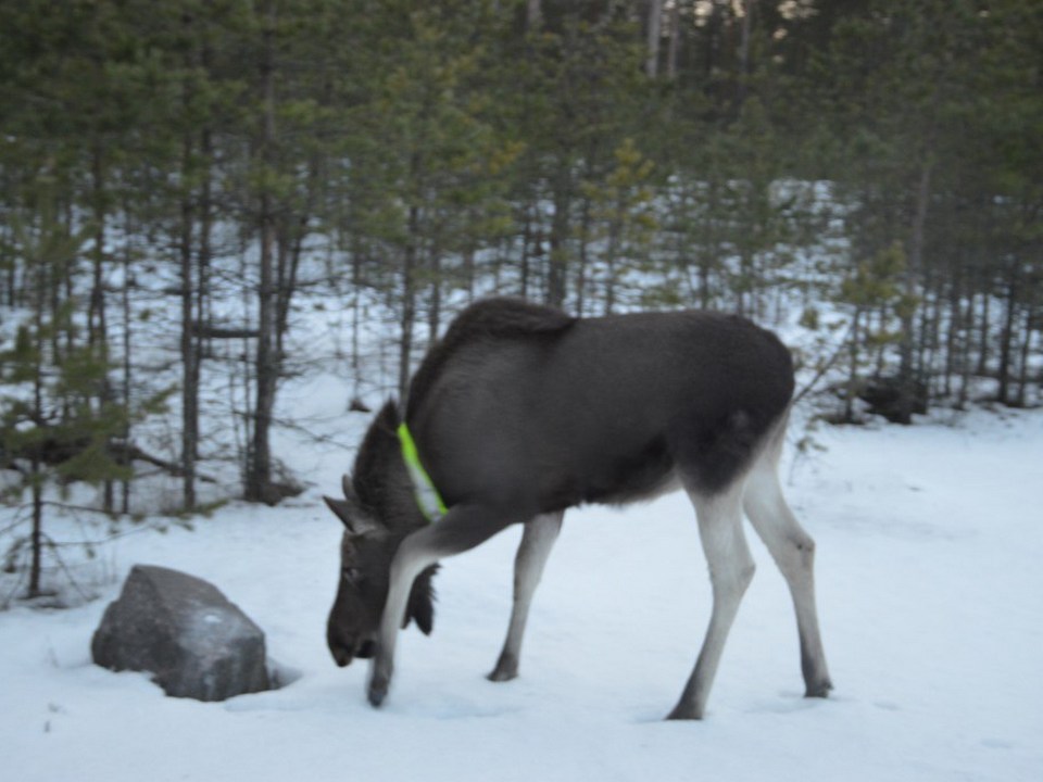 Напомним, что несколько дней подряд в соцсетях появлялись сообщения, фото и видео довольно крупного, но молодого лося со светоотражающим ошейником на шее. Его видели вальяжно переходящим «Скандинавию». К счастью, водители его вовремя замечали и пропускали. А желающие останавливались, фотографировались и даже гладили. Приходил лосёнок и к рыбной базе, чувствуя себя совершенно комфортно рядом с людьми.