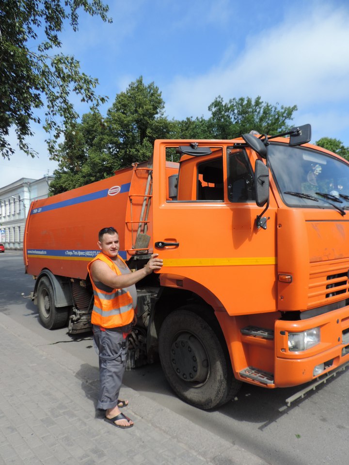 Знакомьтесь: Илья ЯРОШКО, оператор подметально-уборочной машины. Для работы этого сложного агрегата используется вакуумный принцип, поэтому ярко-оранжевый автомобиль и прозвали в народе «пылесосом». Только пылесосит он не пол в квартире, а улицы Выборга.
