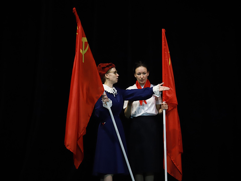 Знакомая выборгским зрителям по спектаклям «Тень» и «Ромео и Джульетта» актриса Мария Суворова играет пионерку, на юные плечи которой выпали суровые испытания. Сама Мария в силу возраста не застала пионерскую организацию, но знает о ней от бабушки. И при создании образа пользуется её советами.