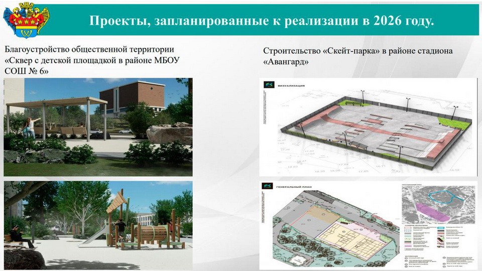 - Запланированы средства на уличное освещение, содержание городских территорий, озеленение, продолжение благоустройства части Петровской набережной, детские площадки и др.