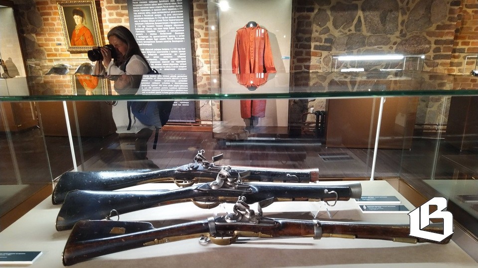 Экспозиция продолжается на втором этаже, где не останется равнодушным даже далекий от военной летописи человек. Имя Александра Васильевича Суворова знакомо каждому. В этом году отмечают две суворовские даты – 225 лет со дня смерти и 295 лет со дня рождения. Но здесь рассказ не о личности и победах полководца, а о том, как и чем воевали суворовские войска. В этом плане выставка прекрасно коррелируется с экспозицией «В Выборге – проездом», которая недавно открылась на втором этаже главного корпуса. Там книги и документы о пребывании Суворова в Выборге. Здесь – шпаги и мушкеты, кожаные ранцы и суконные мундиры, каждый цвета определенного полка, роскошные портреты генералиссимуса и императоров. Так и кажется, что все эти экспонаты – для съёмки исторического кино. Но нет, все предметы настоящие, тех времен.