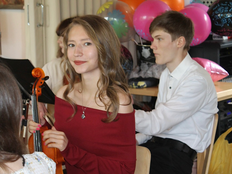 В концерте приняли участие гости из Санкт-Петербурга — воспитанники Школы искусств имени Евгения Александровича Мравинского: ансамбль скрипачей класса Ларисы Карпечевой, концертмейстер Ольга Шахова.