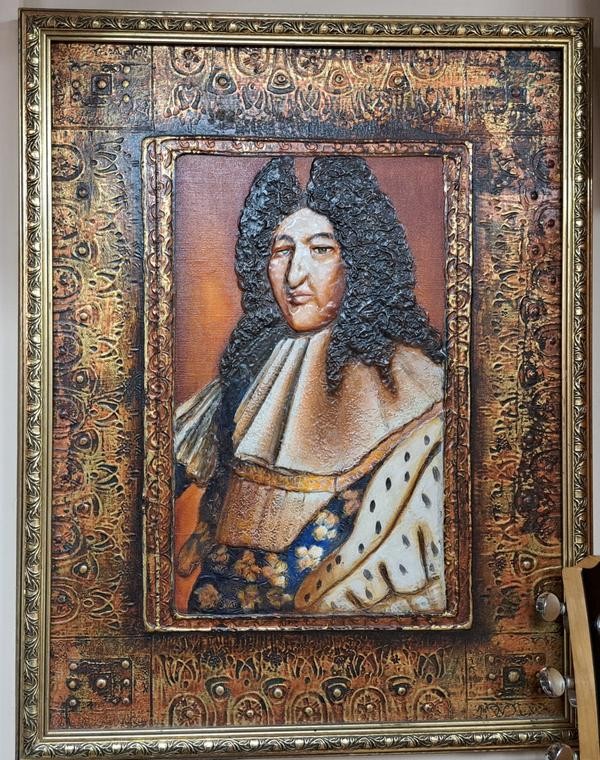 Картина с изображением Людовика XIV – особый подарок. Автор картины известный брянский художник Сергей Кустарёв. Его картины висят в галереях не только России, но и в США. Кустарёв - член Союза художников. В свой брянский период мой друг Дима дружил с ним и Кустарёв подарил ему эту картину. С тех пор она сопровождает Диму везде и стала неким талисманом Винилового бункера. Мой сын Миша принимал участие в оформлении Винилового бункера. Здесь его оригинальные музыкальные постеры. Он никогда раньше не увлекался рисованием. И лишь 5 лет назад открыл для себя это направление. Сначала рисовал по просьбе друга, затем для районной газеты.