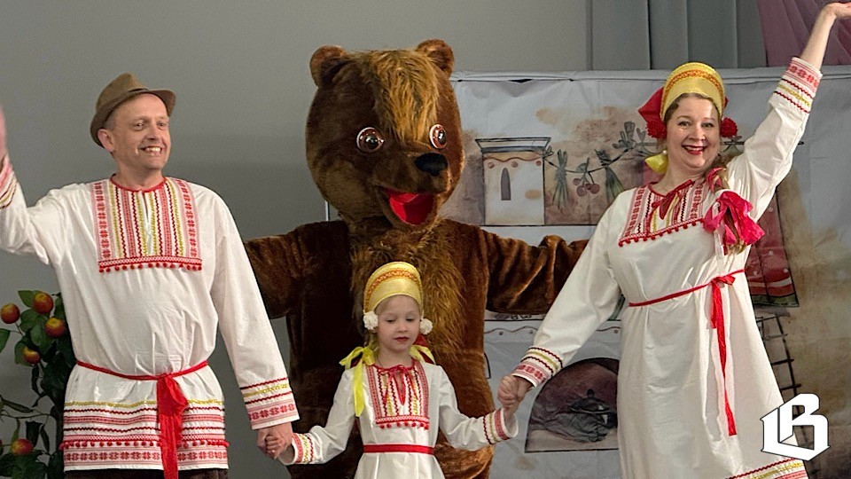 Пространство зала было оформлено с особым вниманием к деталям: при входе гостей встречала колоритная фотозона, а стену украшала интерактивная карта России, дополненная QR-кодами. Центром притяжения стала декорация большой русской печи, на которой расположилась выставка уникальных кукол – вязаных и сшитых вручную. Среди экспонатов, созданных руками воспитанников детских садов, особого внимания заслуживал искусно выполненный пальчиковый театр.