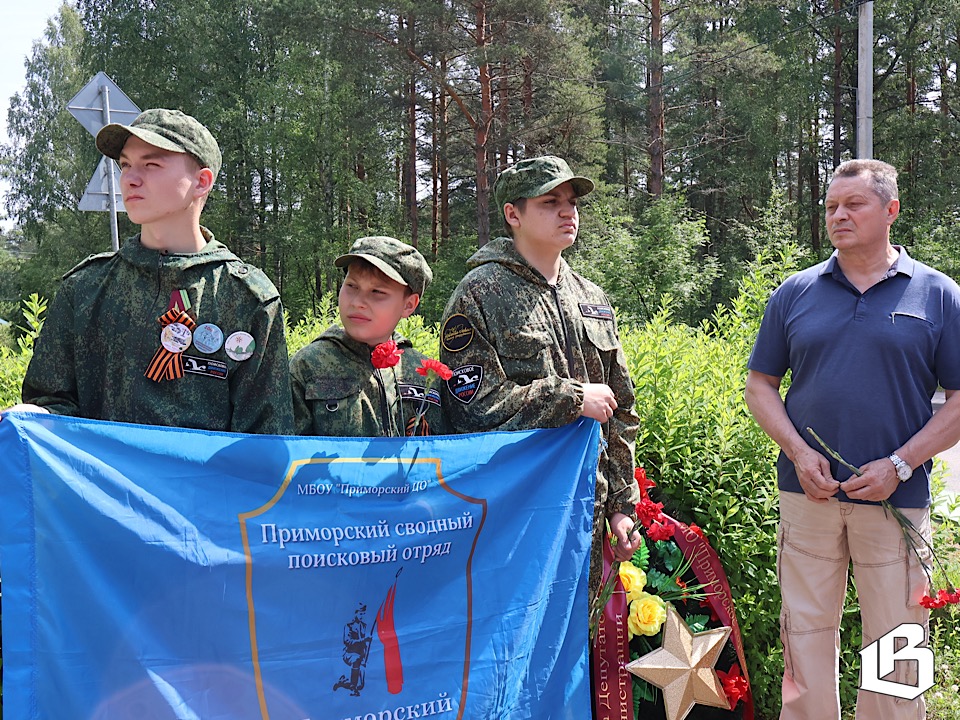 Церемония прошла с отданием воинских и христианских почестей в присутствии местных жителей, представителей местной администрации и правительства Ленобласти, поисковиков, в том числе юных, из сводного отряда «Приморский рубеж», которые очень много помогают старшим товарищам в посильной для их возраста работе, за что уже имеют заслуженные награды.