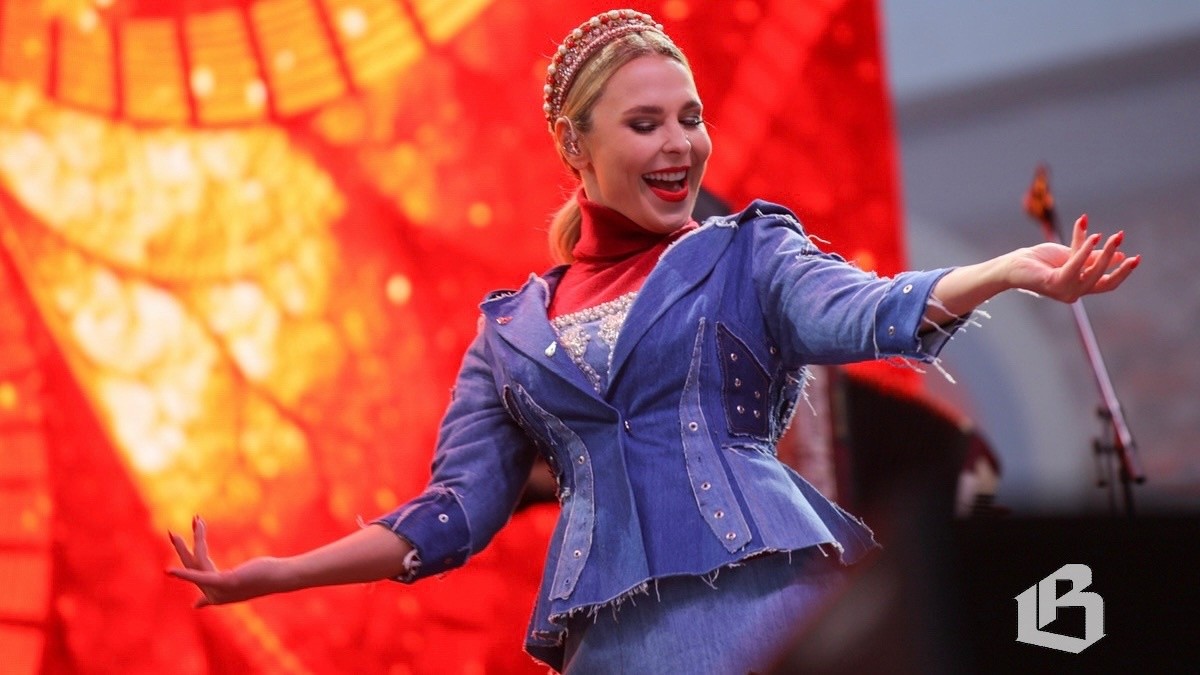 Интересно, что несмотря на довольно холодную погоду, певица вышла в ярком костюме, с расшитым корсетом в русском народном стиле и в кокошнике на голове. Образ русской девушки-красавицы несла певица с большим достоинством и огромной любовью.