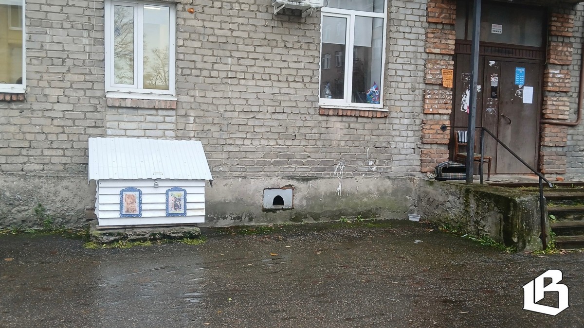 В Выборге рядом с многоквартирным домом появился домик для кошек