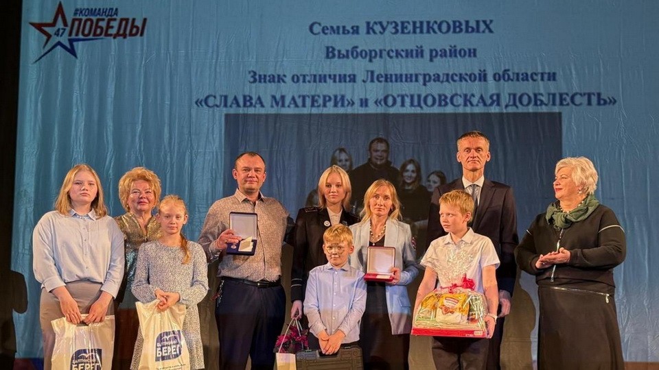 На празднике, посвящённом Дню отца и Дню матери, 23 многодетные мамы из разных районов Ленинградской области получили знак отличия «Слава Матери», а 14 глав семей – знак «Отцовская доблесть».