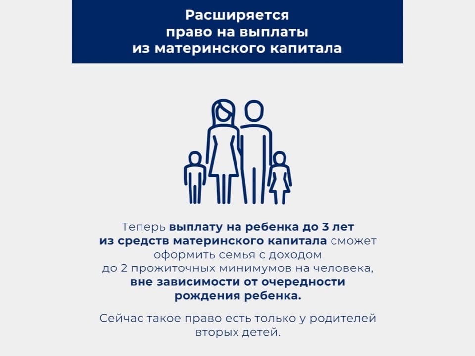 - Действующие меры поддержки объединяются в единое пособие, которое будет предоставляться на единых правилах Социальным фондом России. При этом для тех семей, где дети родились до 31 декабря 2022 года, предусмотрены сохранные нормы: родители смогут выбрать, получать пособия по старым правилам или перейти на универсальное пособие, – заявил он.