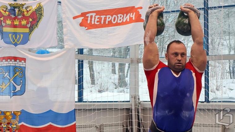 Наш земляк, председатель федерации гиревого спорта Выборгского района Дмитрий Лобанов в первому упражнении выполнил 59 повторов.