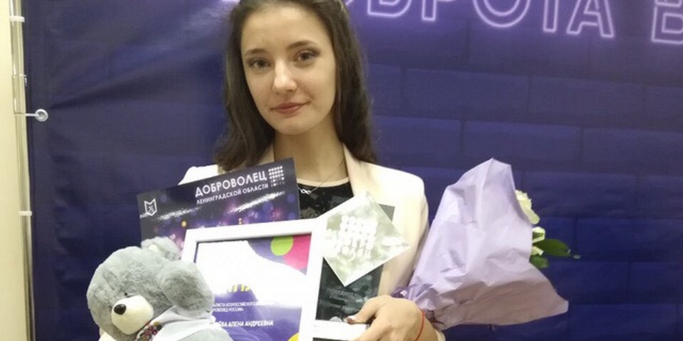 Недавно Алена приняла участие в международном форуме в Москве, где обучалась волонтерским практикам, а также стала участницей финальной церемонии награждения «Доброволец России». Отмечена наша землячка и на региональном уровне – ее проект стал победителем конкурса «Добровольцы Ленинградской области» в номинации «Рожденные помогать».