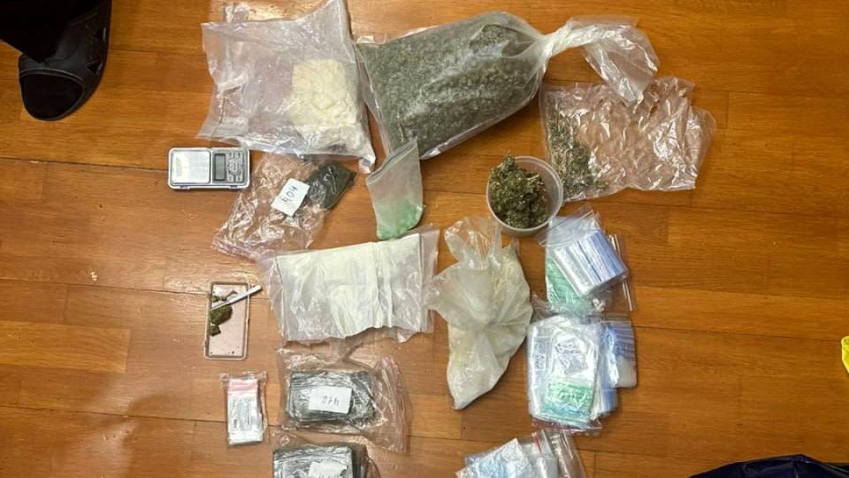 Полицейские изъяли 6 бумажных конвертов с растительными веществами и 3 полимерных пакета с неизвестным веществом общей массой почти два с половиной килограмма.